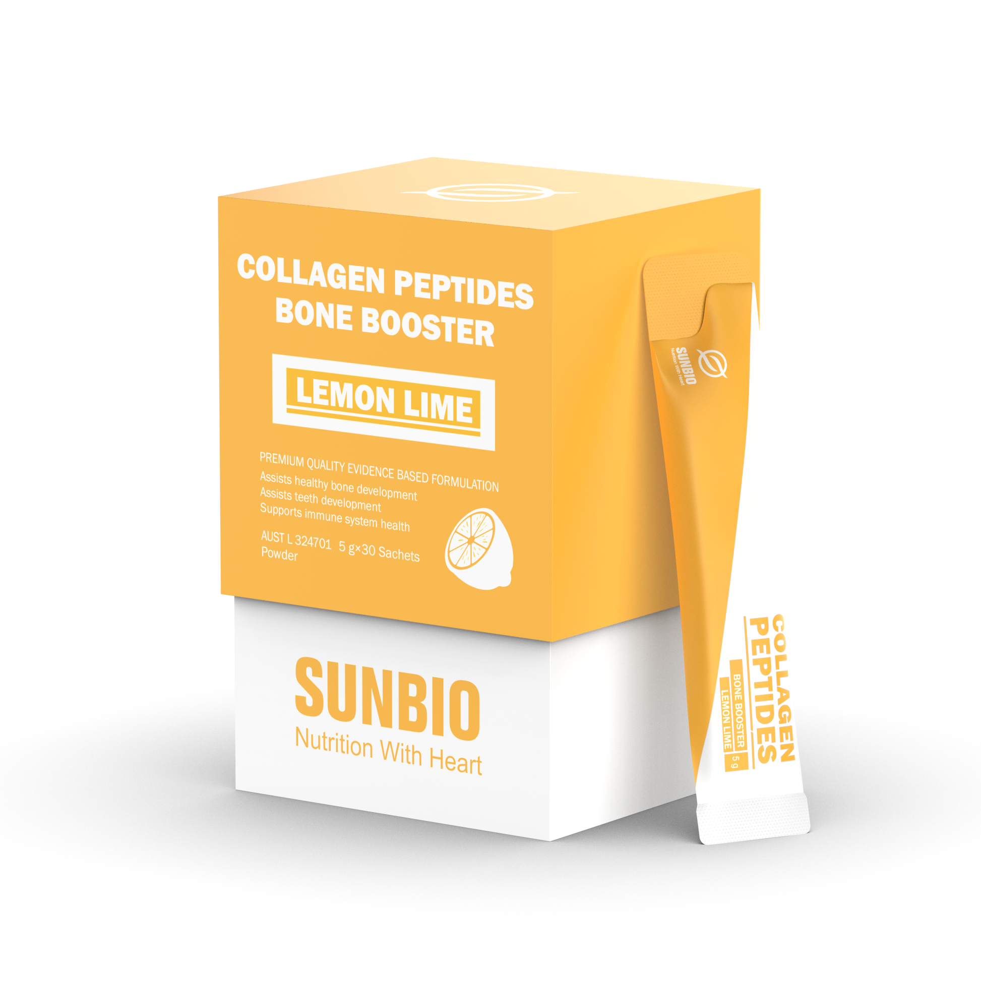 90 Day Pack Sunbio Collagen Peptides Bone Booster Lemon Lime 30x5g
